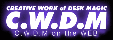 ![]() Creative Work of Desk Magic ■C.W.D.M の正式名称です。僕が、高校2年のときに、同じクラスの、T.Nといっしょに作ったグループ(?)で、I.L.Mに対抗してつけた名前です。特に何かしていたわけではないのですが、アニメーションの研究(?)みたいな物を良くしていたかな。卒業と同時に、終わってしまったのだけど、この名前を、僕が捨て切れずに、今も使っています。 ■現在の活動としては、WEB上でこのHPを運営するのみとなっています。内容は、Read meの方に書いてありますが、パソコンの普及により、多くの人が比較的手軽に色々出来るようになって来ました。我々C.W.D.Mは、今のインターネット時代、デジタル環境下の中で、デザイン・イラストなどを始め、エンターテイメントにおいて、常に我々が目指したものを高い次元で形付ける集団でありたいと思っています。そして、先頭集団として、リードして行けたらなと考えています。 ■お仕事募集しています。各種イラスト作成・HP・HP用グラフィックパーツ作成・チラシ・パンフ・記事・その他色々。まずは、メールでご連絡下さい。 e-Mail : ![]() ■今後船橋支部(第2支部)が出きるかも・・・。