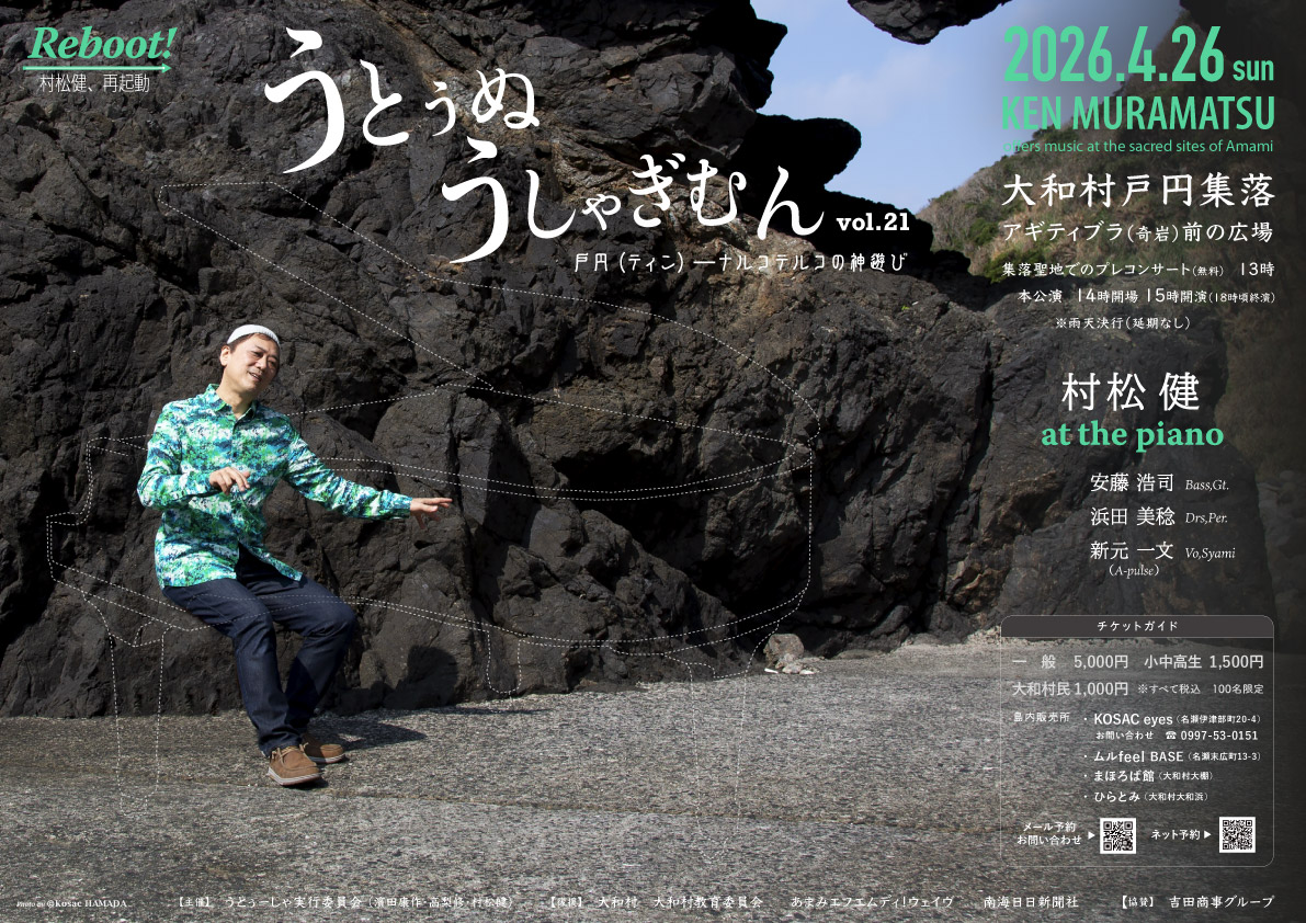 昨年9月に予定されていた21回目の「うとぅぬうしゃぎむん」は、村松健の右手の不調により中止することとなり、楽しみにしてくださっていた皆様には、多大なるご心配をおかけしました。