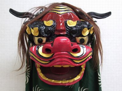 | 獅子頭:宇津(雄) 頭の形状が凸が宇津(雄)、丸いのが権九郎(雌) |