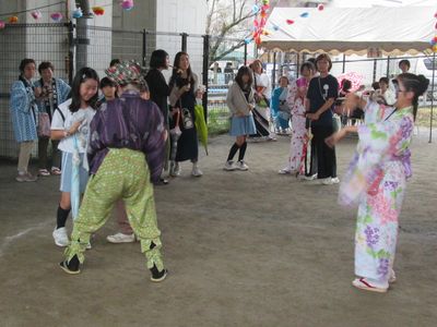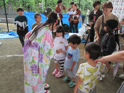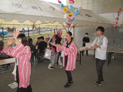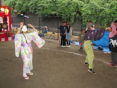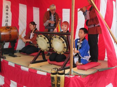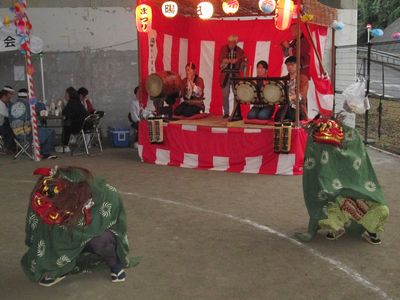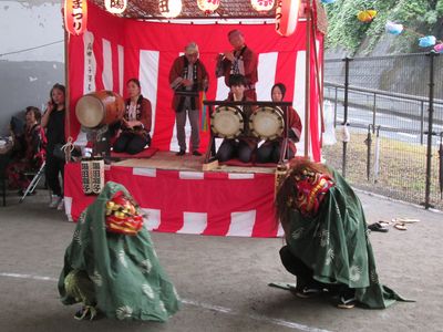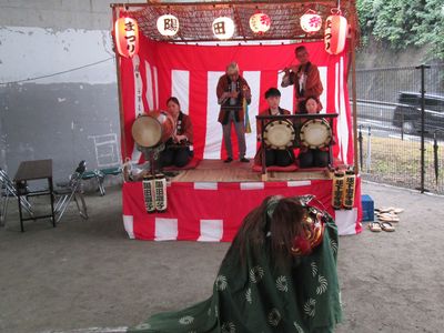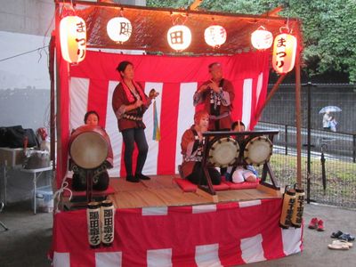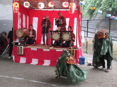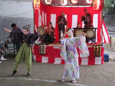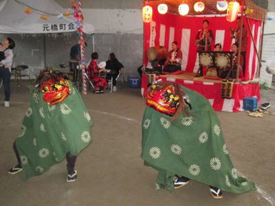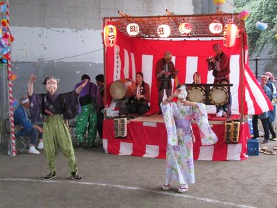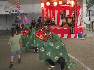 お隣の元橋町会の町内祭におはやし出演しました。 坂下はやし連のメンバーの中には、元橋町会在住者も在籍しています。 |