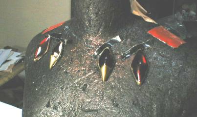 肩パーツは安全ピンで衣装に固定 肩重量170グラム |