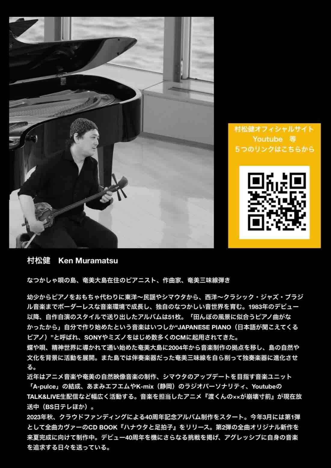 【出演】 村松健 ピアノ・奄美三味線・フルート