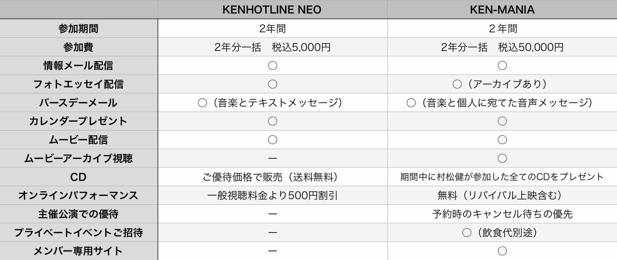 これまでKENHOTLINEを皆さんに村松健の活動をより身近に感じていただけるよう運営してまいりましたが、この2つのメンバーシップの違いを明瞭にすること、同時にKENHOTLINEをもっと気軽に参加できる村松健のプラットフォームとしてより機能させることを念頭に、いま一度、アップデートしようということで、この3月1日からKENHOTLINE NEOを新設いたします。