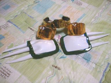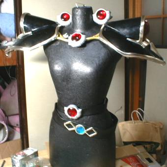 肩パーツは安全ピンで衣装に固定 肩重量170グラム |