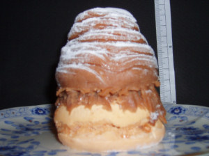 小さい栗2個入った栗ケーキの上に珈琲クリーム。