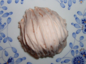 ナッツ入り焼きメレンゲの上にお酒の効いたマロンクリーム。