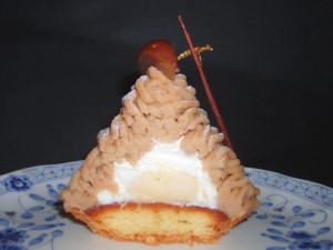 スポンジの上に栗入りマロンムース。 スポンジの上にマロンクリーム。 粉砂糖とココア粉 2010.2.28