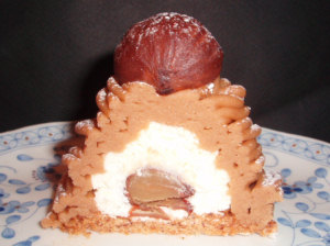 生クリームの上にマロンクリーム。 渋皮栗の上に粉砂糖。 2007.6.3