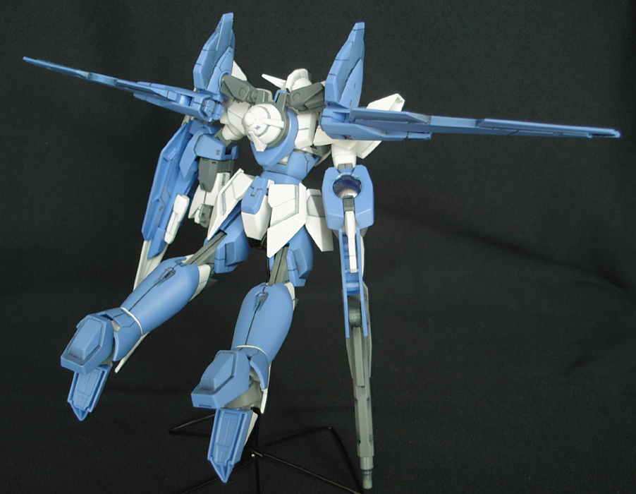 ガンダムOOの外伝から、1.5ガンダム。 キットの出来が超絶に良いんで、ヒケ消しやエッジ出しのためのペーパーがけは不要でした。 やったことといったら、 各パーツのゲート処理、 ガンダムマーカー(スミ入れ用)によるスミ入れ&似非シャドウ、 一部モナカ割パーツ(二の腕とか)の接着と合わせ目消し、 くらいかな。後は全体をトップコート(つや消し)でコーティング。 コレといった奇をてらう点がなく、色使いがシンプル(Hi-νみたい))なんで モビルスーツとしても気に入っています。 しかし、これが後にあのリボガンになるとは…… |