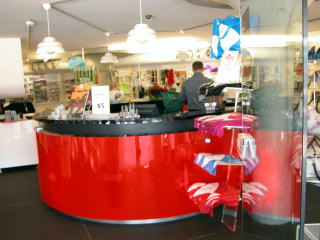 オペラハウスの出入口付近のお土産ショップです。ウィンドーに過去に使ったトウシューズがいくつか飾られていました。このオペラハウスで踊ったバレリーナ達のものなのでしょう。日本人バレリーナの名前(MIWAKO KUBOTA)も見えました。