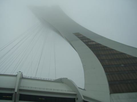 写真が曲がっているわけじゃなくて、建物が曲がっているわけだ。モントリオールの五輪パークのタワーだよ。針金で吊っているように見えるのは、下は野球場で、前まではモントリオールエクスポスのホームだったと思うけど、チームは買収されて今はアメリカ・ワシントンのナショナルズなんて松下みたいな名前になってしまった。だからモントリオールには野球チームは今はないんだ。タワーのしたには、五輪のメダリストが彫ってあって、コマネチももちろんあったけど、体操の塚原とか加藤とかそんな名前もあったね。もう古い話だよ、30年も前のことだしね、ここはフランス語でモントリオールの子供は英語フランス語のバイリンガルというわけだ。