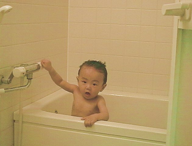 | ゆうたを風呂に入れる場合、寒い時期はハダカで風邪など引かせぬようにと気を使うが、夏の盛りはハダカで放っておいても心配ないので楽だ。 シャワーだけで済ませてしまう時などは、空の浴槽にゆうたと洗面器を入れておく。ゆうたは洗面器と排水溝のキャップだけで10分は遊んでいられるので、私はその間に急いで自分の用を済ませ、それからゆうたの「洗浄」に取りかかっていたのだが、ここ数日でシャワーとツマミの関係を理解したらしく、私がシャワーを浴びているとツマミを捻って止めたり、カランに切り替えたりするようになった。 まあ、このくらいなら可愛いもので「上手にできるね。さ、パパにシャーってしとくれ」と大人の対応が出来るのだが、問題は右のツマミ(選択切換)でなく左のツマミ(温度調節)に手が伸びた場合である。 もとより目の前で父親の浴びている水の温度の変化との関係など知る由も無いため、ツマミの回し方には容赦が無い。 まして屈んで頭を洗っている時など完全に無防備である。 「☆*〒煤♂!」 声にならない叫びをあげ、ひっくり返る音を聞きいたちゅまは、私が誤ってゆうたを落としたとでも思ったらしい。 違う。私が虐待を受けたのだ。 |