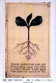 バイクで長瀞にいってきた。2泊3日。3メートルぐらいある岩の上から川の中に飛び込んだり(全然足がつかないよー)、メガネを水の中でなくしたり(さよなら、私の唯一のアニエスb)、はやい流れに流されそうになったり(結構必死 ^^;)、近くの日帰り温泉にいったり、民宿の料理が多すぎて食べ切れなかったり、いろいろした。木陰のなかの小さい沢はとても気持ちがよく、蝉の音とまじった子供の声が騒音じゃなく、風景としてとても気持ちよく聞こえた。作られたイメージなのかもしれないけれど、まさに「日本の夏」ってやつを満喫した。「音」というものは「風景」にかかせない、ということも再確認した。 しかしこれも、生物相の偶然なんだなぁという感じがした。日本猿のかわりに吠え猿がいて、鳥なども南洋系の(例えばひよどり系の、喉も裂けよとばかりに鳴くタイプ)やつがいたら、「みーんみーんみーん。じじじじー」ではなく、「ほーーーーほっほっほっほー、ぴぎゃーぴぎゃー」が「日本の夏」だったわけだ。情緒、風情という言葉の意味も変わっていたように思われる(この「……のように思われる」というフレーズは、寺田寅彦のマネ)。 2001年5月採集。ギャラリーQの「小川真理」版画展のはがき。 |