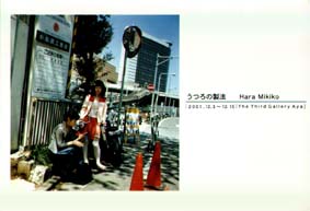 更新を怠っている間にいろいろ書くことができた。羅列しよう。 まず12月1日の川本真琴ライブに行ってきた。ほぼ1年振りの川本はなんか、おんなっぽくなってるような。 つぎ。PHSが壊れた。5秒毎にぶちぶち切れて、通話できない。保証書に買った店に持ち込めと書いてあったので、新宿ピック・ピーカンに持ち込んだら、追い払われてしまった。 「ウチではできないんですよー」 ……うーむ、それならなんだって書けるじゃん(苦笑) いいのか、それで? って、最近このサイト、「トッツィー」……ではなく、「クレーマー」の(……つまんないな)ページみたいになってんな。まあ、私には「抗議抗議抗議!!!」みたいなエネルギーは、全然ないので、「もーいいやー」とダルーく思うだけなのだった。 そして。使っている17インチモニターが壊れた。いろいろものが壊れる昨今。なかなか厳しいなあ。とりあえず以前IIci用に2000円(中古)で買った13インチにつなげ変えたが、せ・ま・い。17インチ液晶で安いやつはないかな? 原美樹子「うつろの製法」展(The Third Gallery Aya〈06-6366-8226〉、2001年12月3日〜12月15日)はがき。採集は11月30日。 |