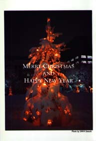 世はクリスマスである。この時期、冷え性の私はとても辛い。足も手も、人間のものと思えないほど、冷たくなっている。そこらへんの人をひっぱってきて眼を閉じさせ、私の足を触らせれば、ほぼ全員が「この人間は……もし人間なのだとしたら……死んでいる」というだろう。 冷え性というのは、実は次世代の人類への進化である。熱の逃げやすい末端への血量をおさえて、基礎代謝量を押さえる戦略をとった結果なのだ。つまり燃費がいいのだ。人類の低燃費車、インサイト(ホンダ)と呼んで欲しい。……プリウス(トヨタ)とは呼ばないで欲しい。 ちょうどひと月前、2001年11月23日採集。沢恵氏製作のはがき。札幌ホワイトイルミネーション。 |