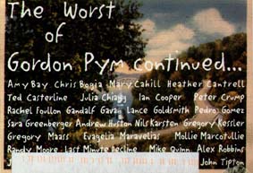 今日の朝の電車も『オキノニッキ』(月光別冊)の続きを読む。昨日の帰りとまったく同じ、ちょうど30ページ分を読んだところで駅に到着。すばらしい安定感(つまり読むスピードが、ということだが)を発揮。そして、帰りの電車も『オキノニッキ』。28ページ(30ページに2ページ足りないよう)しか読めなかったことが、なんだかすごくショック(ってそれほどのことか)。 そしてここ(88ページ)まで読んでも、うーん別に、という感想は変わらないのだった。 私は、いつかどこかで読んだ「ゴダール式」と呼ばれる読書法をつねづね実践したいと思っている(なんだか、微妙なところで読んだような気がしないでもないので、出典を深く探らないようにしておく)。その話は、ゴダールは映画を見ているとき、それがつまらないと20分で出てきてしまう、それを読書でも実践しよう、とかなんとかいうこと。何割か読んで、つまらなければもう読まなくていいのではないか、と。まあ私は実際は、結構な割合でつまらなくても全部読んでしまうのだけれど。でもでも、つまんないものをずっと読んでいて、急におもしろくなっていき、こいつぁすげいぜ! というような本に行きあたったことは、人生のなかでほぼないのだった。 私は、その時読んでいる文章が感染りやすい(そういえば言葉もそう)。この文章がいつもより長いのは『オキノニッキ』のせいだと思う。でも今のことつまんないんだけどね(笑) 続けてまんがを購入。田中ユキ『フェティッシュ』。あさりよしとお『細腕三畳紀』、竹本泉『トランジスタにヴィーナス(3)』、鬼頭莫宏『なるたる(8)』。 Ian Cooper & Peter CrumpのThe Worst of Gordon Pym continued...はがき。 |