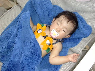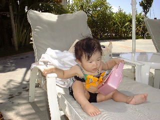 7:00過ぎに起床。うちの生活パターンで言えば異様に早い時間なんだけど 不思議なもんで、旅行となるとこんな時間でも起きられるんだな。 とりあえずありさにはNHK教育の幼児番組(これがまた、好きなんですよ)を 見せておいて、パパとママは身支度。そして、歌ってごまかしながら ありさの着替えをさせて、いざ朝食。ビュッフェ形式なので、ありさが食べられる ものも少しあるので、パンとバナナと卵、野菜系はベビーフードに頼る。 さてさて、今日は自由行動。(と言っても夕方まで) レンタカーを借りてどこかへ行こうか、なんて話もしていたけど、結局ホテルの 敷地内でのんびりすることにしました。 まず向かったのは、「海中展望塔」。ながーい橋を渡っていった先に、ぽつんと あります。水深4メートルの海の中を見られる、というもの。 この橋を渡ってる間も、魚がいっぱいいるのが見えます。 100円で「魚の餌」を売っていたので、早速。(^^) ありさは、パパの抱っこで餌を食べるお魚さんを見ていました。(Photo) (ありさが変な顔してますが、デジカメ写真が少ないのでアップしちゃいました。) 長い階段を降りたところは水深4メートルの世界。色とりどりの魚がたくさん。 壁に、魚の名前などを書いた説明ボードがかかってたんだけど、たいがいの魚には 「味噌汁にして食べる」「唐揚げにすると美味」だのと書いてあって、「ああ。この 青い魚の唐揚げって・・・」などと考えながら見てました。(^^; ・・・ただ、ここは入場料1000円はちょいと高すぎる・・・。 午後は、水着に着替えていざ海へ!ありさも、ひまわりのビキニにお着替え。(Photo) でも、波を怖がってベソをかいてしまったのでプールへ移動。ありさにはきっと 「でっかいおふろ」に見えたんでしょう。大喜びです。 水着に着替えたママは当然コルセットをしていないので、抱っこはパパの係。 一緒にプールに入ってパチャパチャ水遊び。ご機嫌♪(^^) 燦燦と照り付ける太陽の下での生ビールが、またうまい♪♪♪ しばらく遊ぶとお昼寝の時間。パパ共々、デッキチェアで寝てしまいました。(Photo) その間ママは、「リハビリ&ダイエットっ!」と、水中ウォーク。(^^; そして夜。今日もパーティー。できるなら夕飯くらいゆっくり食べさせて欲しいのに。 決められた時間の中でありさに食べさせて、偉い人の話聞いて、自分も食べて・・・は 厳しい。昨日に続き、ママは今日も殆ど食べられない。(T-T) そして、ゲームが始まった。男性の部、女性の部、子供の部と3回。 パパは、予選じゃんけんで残念ながら敗退。そして、ママ。予選勝ち抜く。v(^-^) 決勝で待っていたのは「どんけつゲーム」。腰が悪いし・・・と一瞬躊躇したけど 「1位の人に」と副社長の財布から諭吉様登場。・・・やるしかないっしょ。こりゃ。(笑) まさか本気で相手もこないでしょ。相手は、旦那と同ブロックの店長の奥様。 お互い遠慮気味な「どんっ」だったが、なぜかママの勝利。(しかし、遠慮気味だったのは 私とこの奥様だけで、あとの2組はマジバトルでした。(^^;) 次に相手として出てきたのは、営業本部長(超偉い人)。 1万円への想いと、日頃の恨み(笑)を込めた一撃をお見舞い。 最後は、マネージャーとの「あっちむいてホイ」対決。(こんなんばっか。(^^;) ついに1位になり、1万円ゲットぉ。ふふふふ。 最後の、旅行代理店提供の「旅行券1万円分」争奪戦も最後のふたりまで残ったけど 残念ながら負けてしまいました。 部屋に帰ってから敷地内のコンビニにビールを買いに行き(パパの要望)、今日こそ 「大人の時間」♪るんるんでありさを寝かしつけました。 「パパぁ、ありさ寝たよぉ」と見ると、そこにいたのはトドのように寝てるパパ。 やっぱり諦めきれないママは、今日もテラスでひとりビールを飲むのだった・・・。(T-T) |