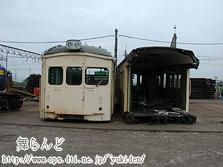 左 :パンタグラフが撤去され碍子だけが残っています。 |