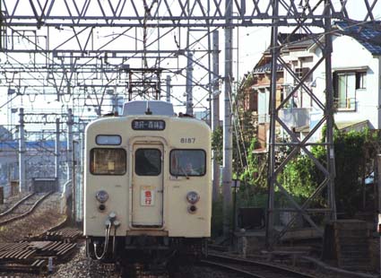1987年7月頃の上福岡駅で撮影されたものです。この車両(81120F)は現在みることが出来る白地に青ラインの新塗装となっています。 ご覧になって分かるようにこの車両にもまだ上部灯が残っています。 |